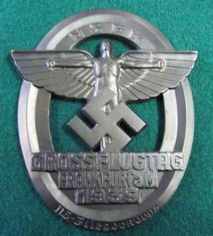 Beautiful NSFK Plaque for a 1939 "Grossflugtag" in Frankfurt.  Light metal with "Brehmer, Markneukirchen" mark on reverse.